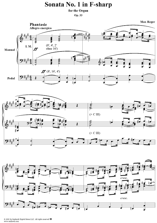 Digital Sheet Music for Sonata No. 1 in F-sharp, Op. 33 by Max Reger scored for Organ Solo; id:254038