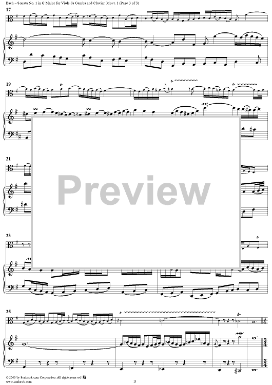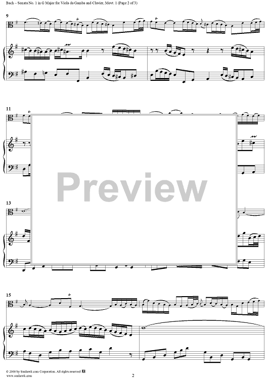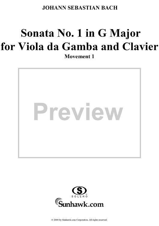 Digital Sheet Music for Sonata No. 1 in G Major, Movement 1 - Piano Score by Johann Sebastian Bach scored for Viola da Gamba/Piano; id:240735