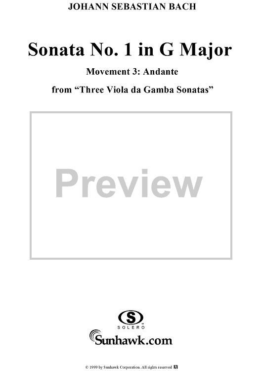 Digital Sheet Music for Sonata No. 1 in G Major, Movement 3 - Piano Score by Johann Sebastian Bach scored for Viola da Gamba/Piano; id:240737