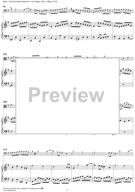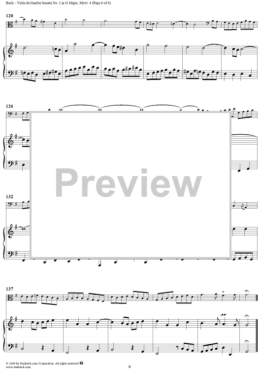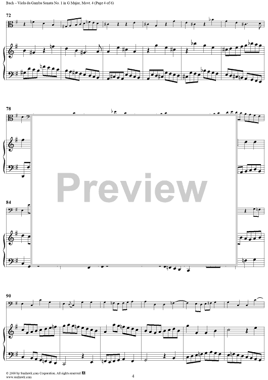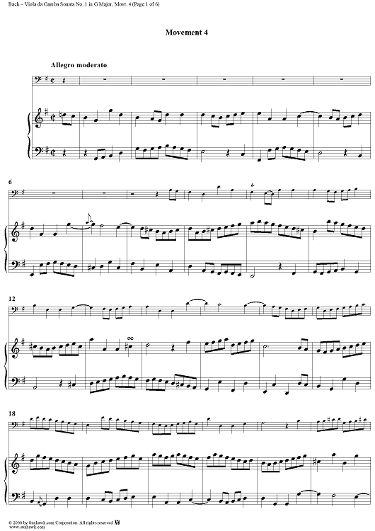 Digital Sheet Music for Sonata No. 1 in G Major, Movement 4 - Piano Score by Johann Sebastian Bach scored for Viola da Gamba/Piano; id:240738