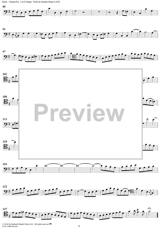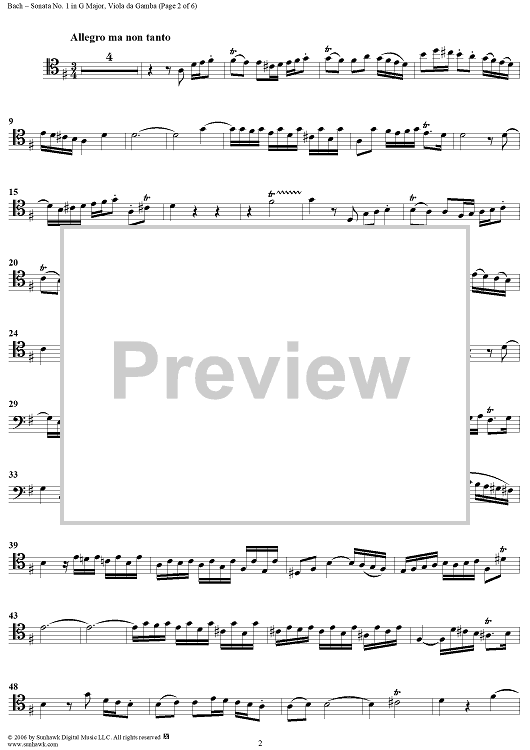 Digital Sheet Music for Sonata No. 1 in G Major - Viola da Gamba - Viola da gamba by Johann Sebastian Bach scored for Viola da Gamba/Piano; id:311762