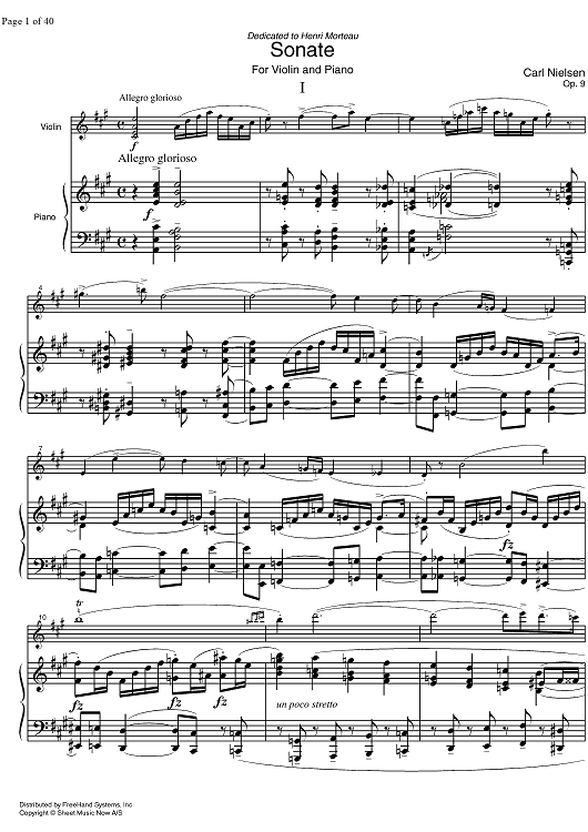 Digital Sheet Music for Sonata No. 1 Op. 9 - Score by Carl Nielsen scored for Violin/Piano; id:331901