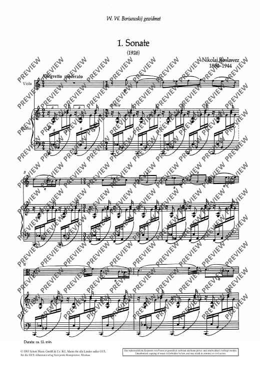 Digital Sheet Music for Sonata No. 1 by Nikolai Andreyevich Roslavets scored for Viola And Piano; id:496650