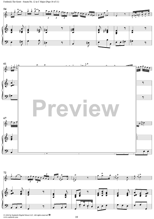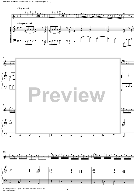 Digital Sheet Music for Sonata No. 12 in C Major - Piano by Frederick II, King of Prussia scored for Flute/Piano; id:303380