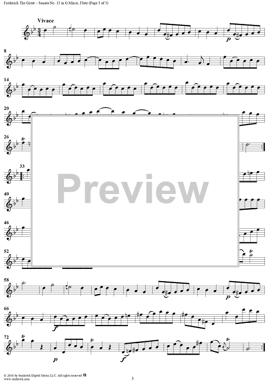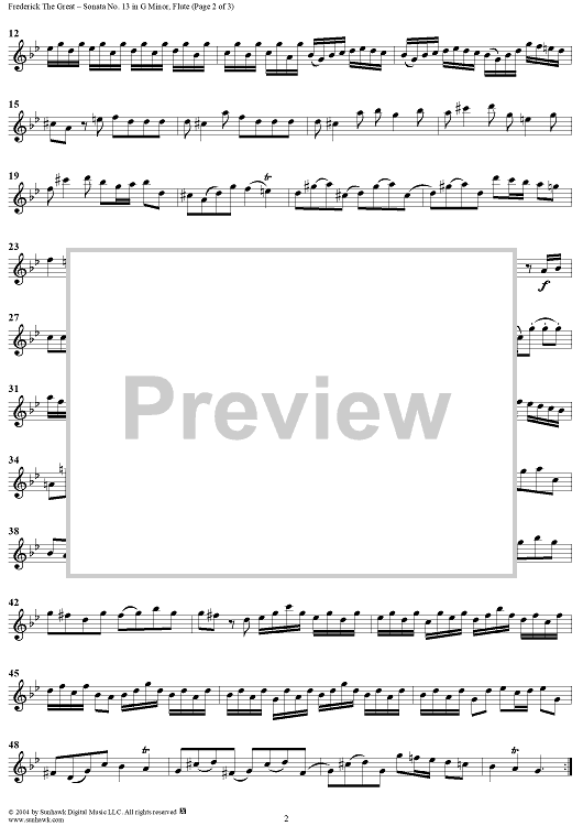 Digital Sheet Music for Sonata No. 13 in G Minor - Flute by Frederick II, King of Prussia scored for Flute/Piano; id:303613