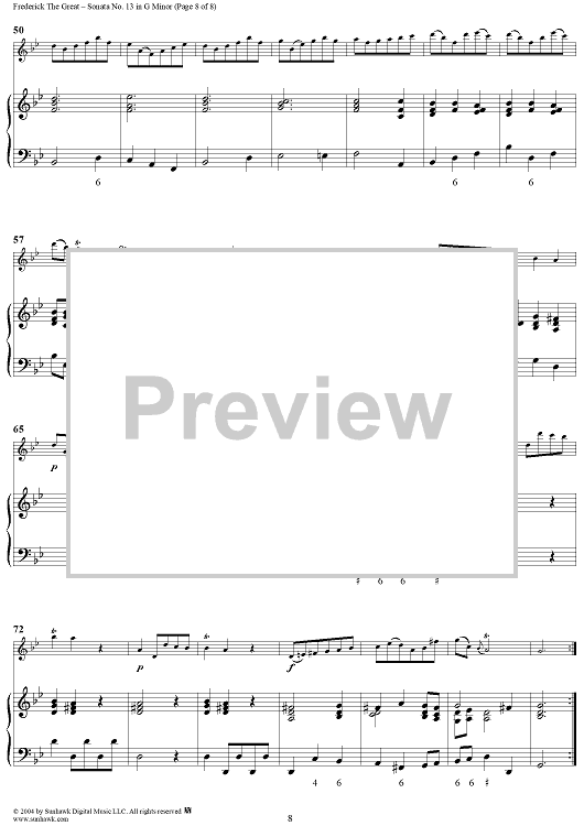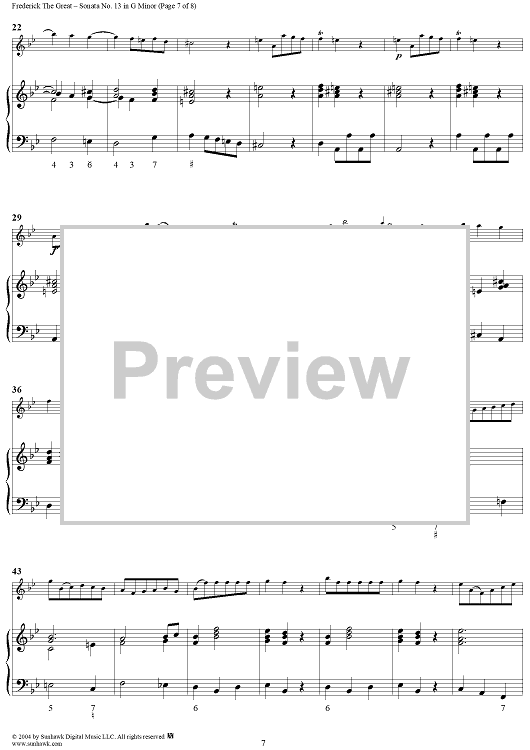 Digital Sheet Music for Sonata No. 13 in G Minor - Piano by Frederick II, King of Prussia scored for Flute/Piano; id:303607