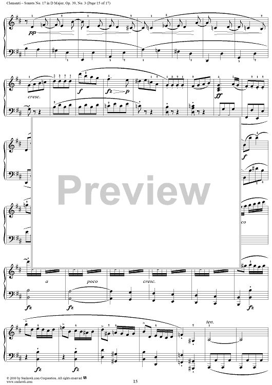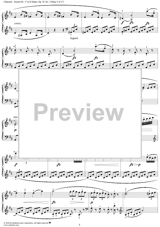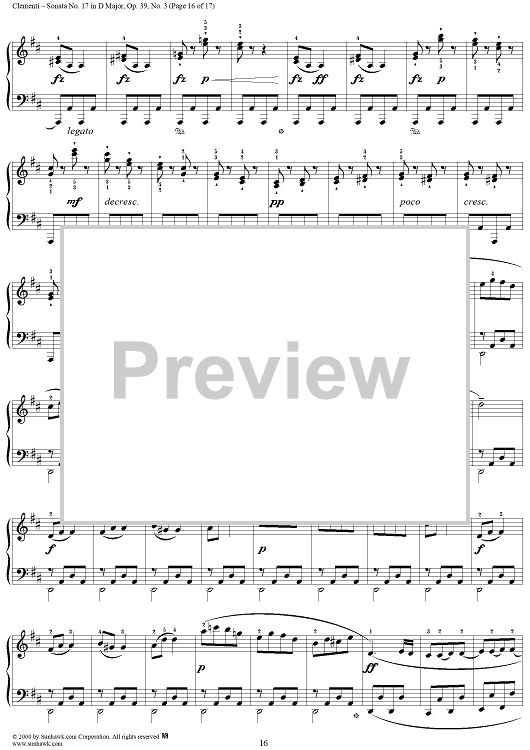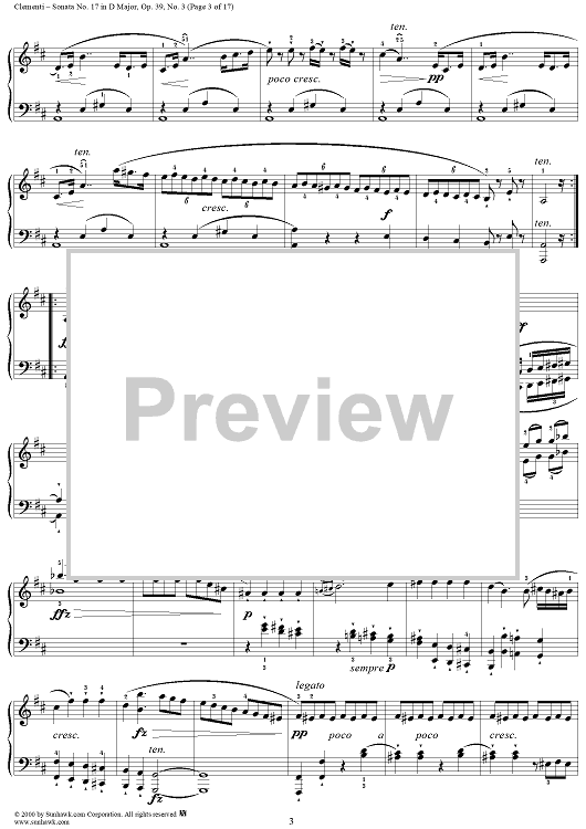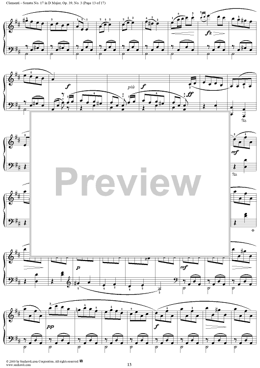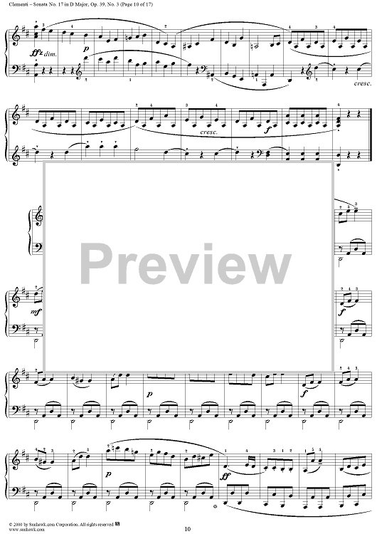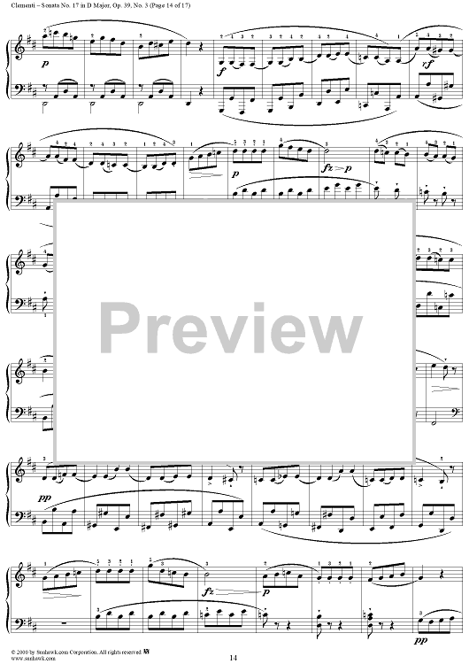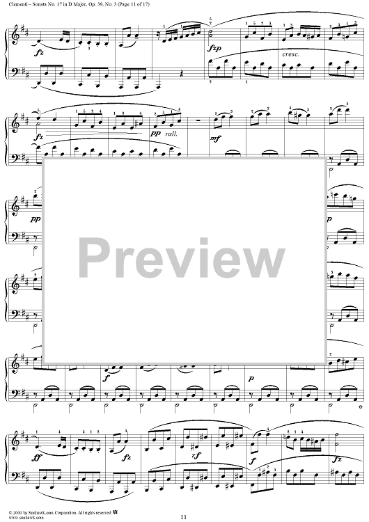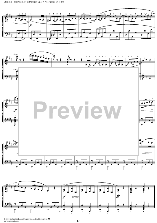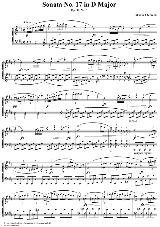 Digital Sheet Music for Sonata No. 17 in D Major, Op. 39, No. 3 by Muzio Clementi scored for Piano Solo; id:272397