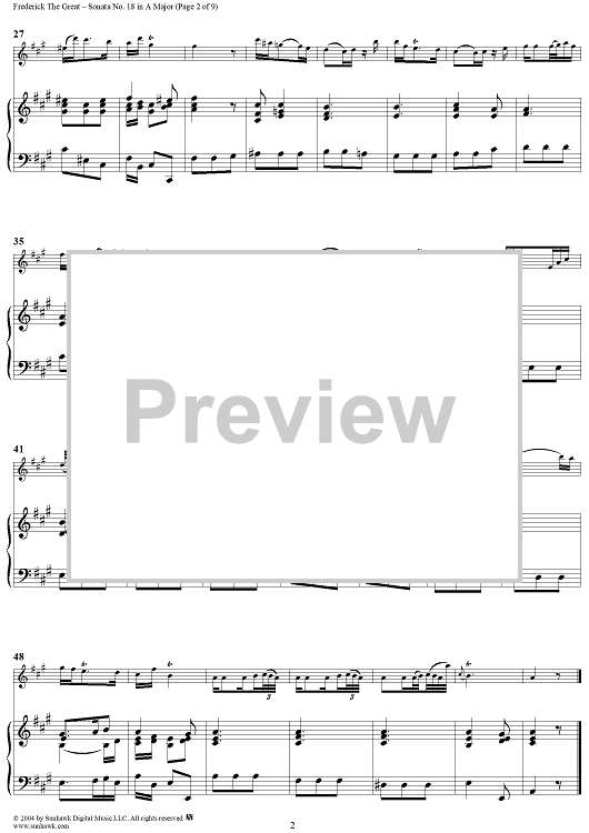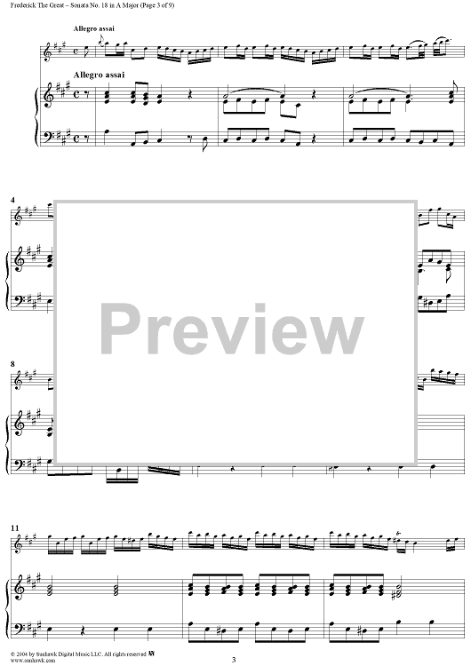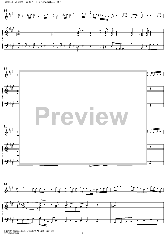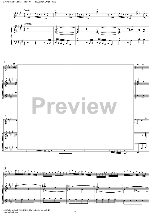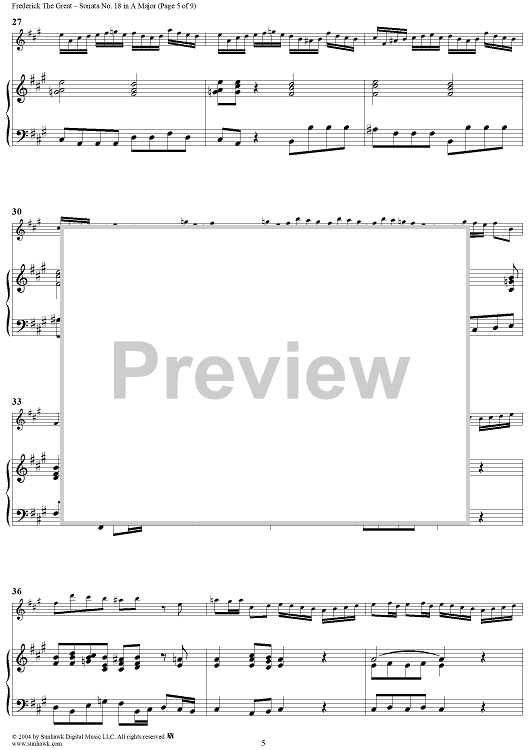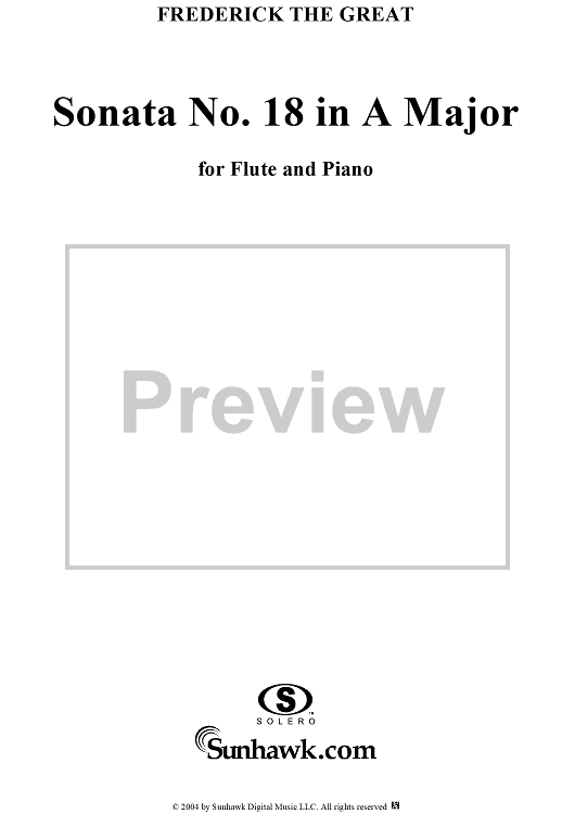 Digital Sheet Music for Sonata No. 18 in A Major - Piano by Frederick II, King of Prussia scored for Flute/Piano; id:303612