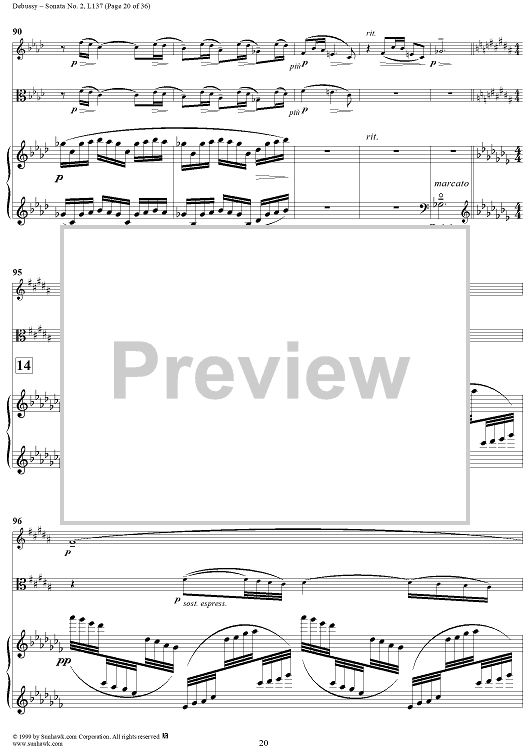 "Sonata No. 2 for Flute, Viola and Harp - Harp" Sheet Music by Claude Debussy