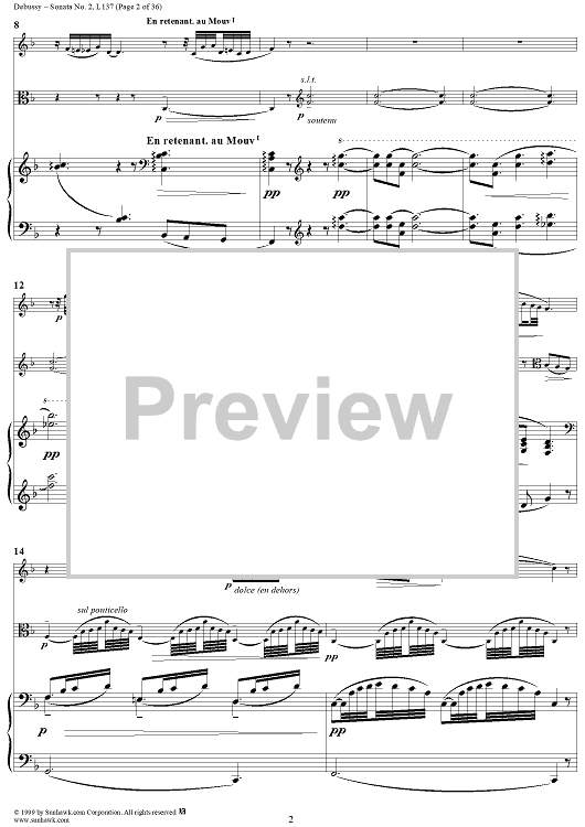 Digital Sheet Music for Sonata No. 2 for Flute, Viola and Harp - Harp by Claude Debussy scored for Flute/Viola/Harp; id:174004