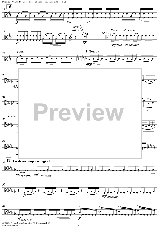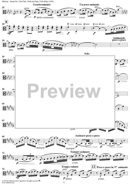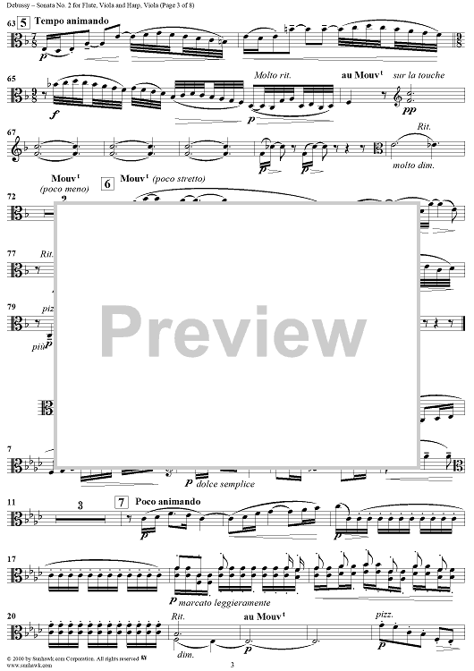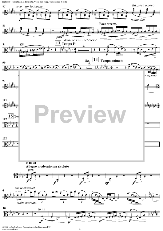 Digital Sheet Music for Sonata No. 2 for Flute, Viola and Harp - Viola by Claude Debussy scored for Flute/Viola/Harp; id:198131