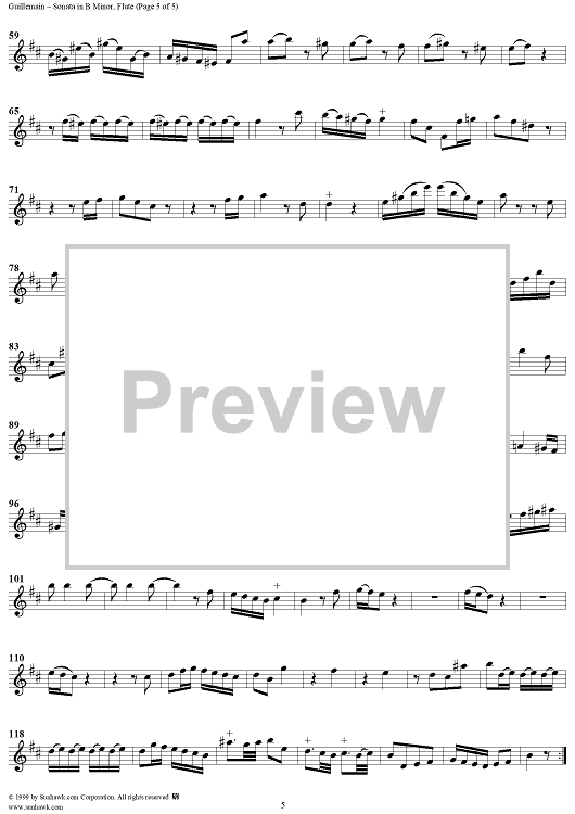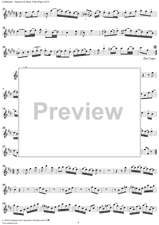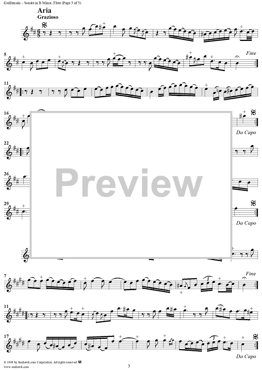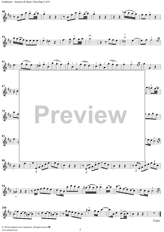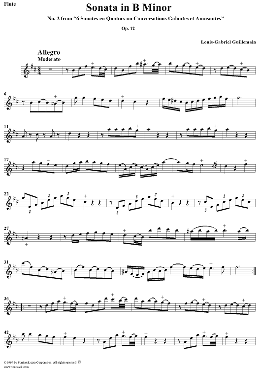 "Sonata No. 2 in B Minor - Flute" Sheet Music by Louis-Gabriel Guillemain