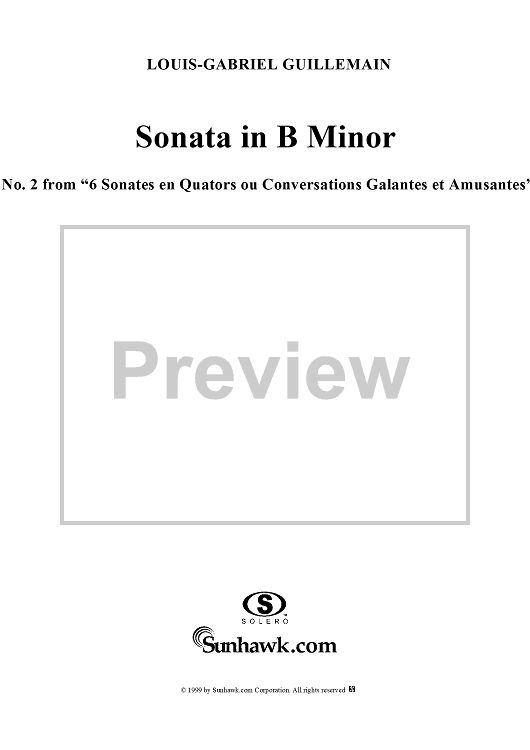 Digital Sheet Music for Sonata No. 2 in B Minor - Flute by Louis-Gabriel Guillemain scored for Flute/Violin/Viola da Gamba/Continuo; id:267541
