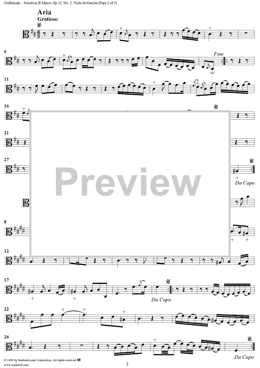 "Sonata No. 2 in B Minor - Viola da gamba" Sheet Music by Louis-Gabriel Guillemain
