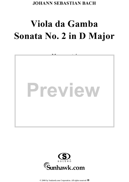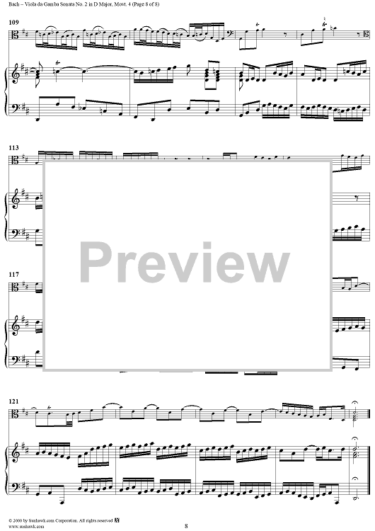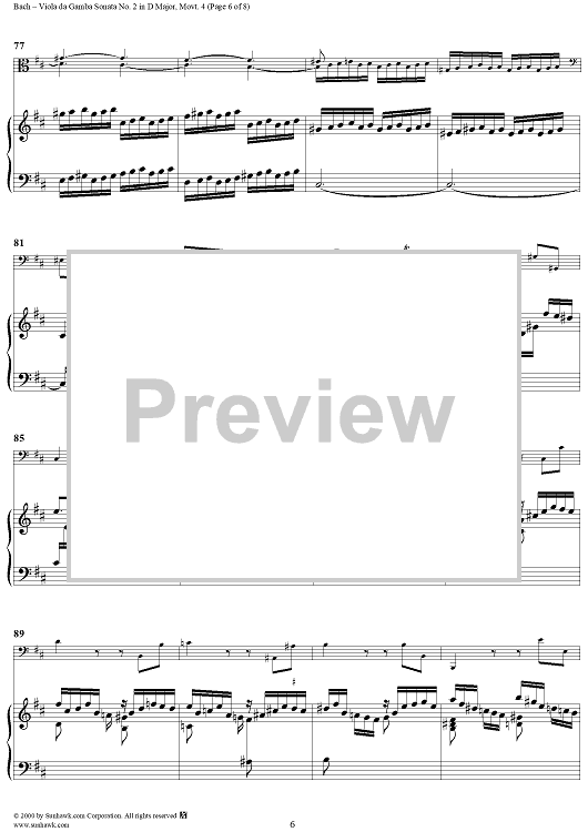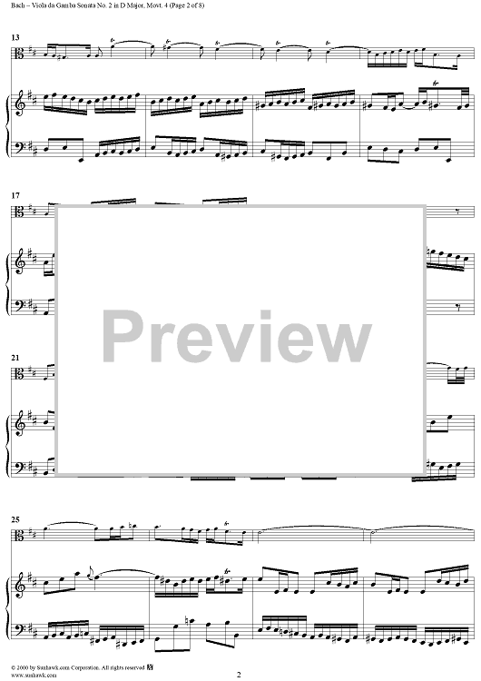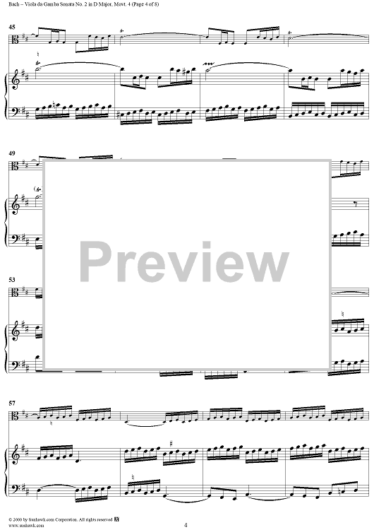 Digital Sheet Music for Sonata No. 2 in D Major, Movement 4 - Piano Score by Johann Sebastian Bach scored for Viola da Gamba/Piano; id:240746