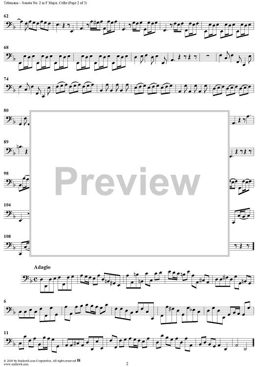 "Sonata No. 2 in F Major - Cello" Sheet Music by Georg Philipp Telemann
