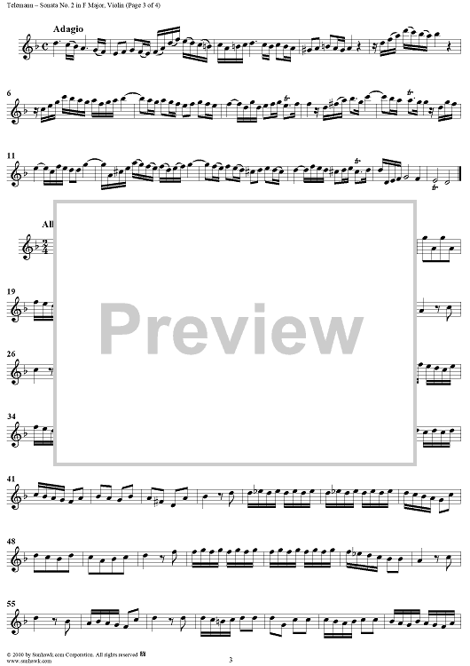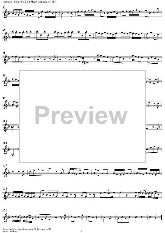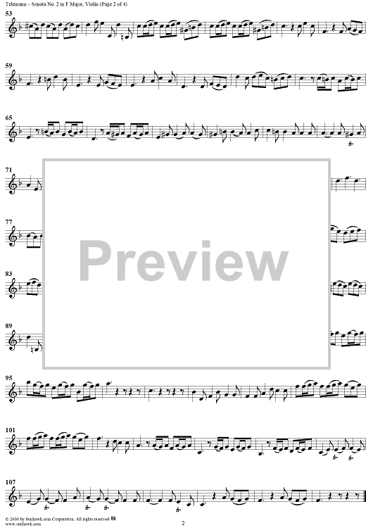 "Sonata No. 2 in F Major - Violin" Sheet Music by Georg Philipp Telemann