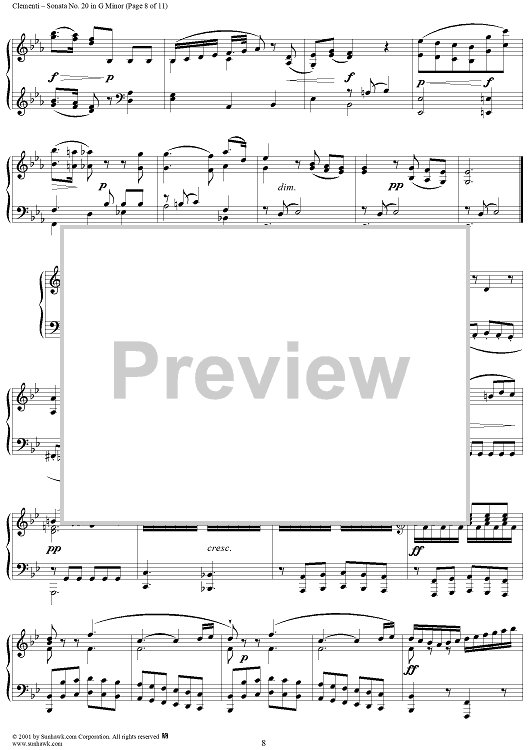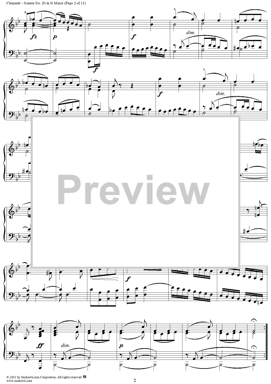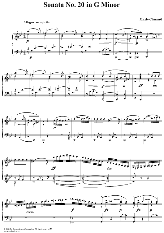 Digital Sheet Music for Sonata No. 20 in G Minor by Muzio Clementi scored for Piano Solo; id:272684