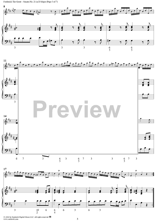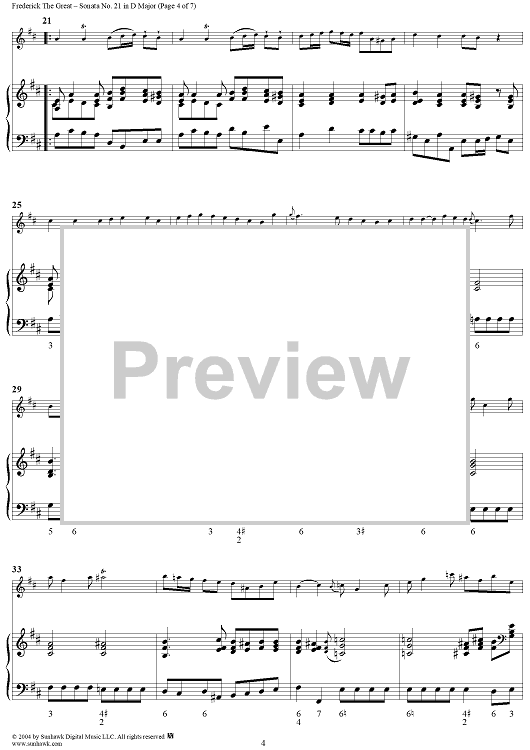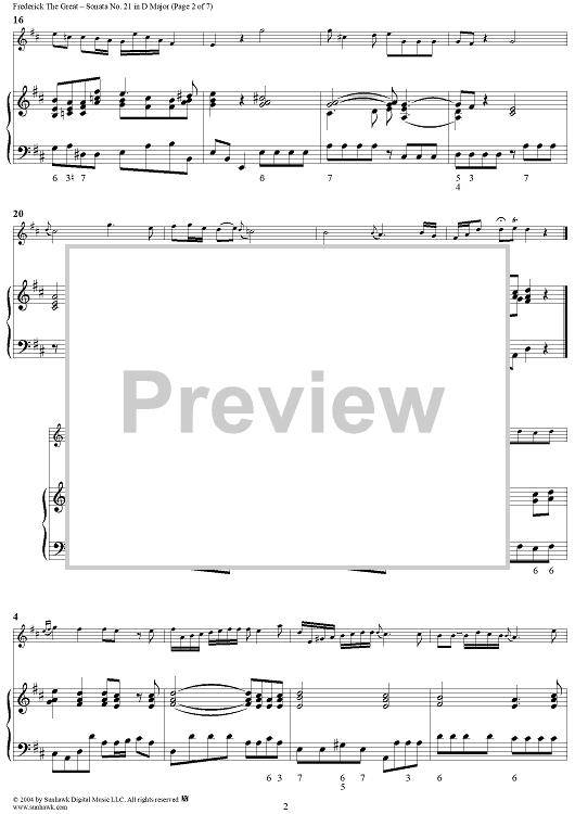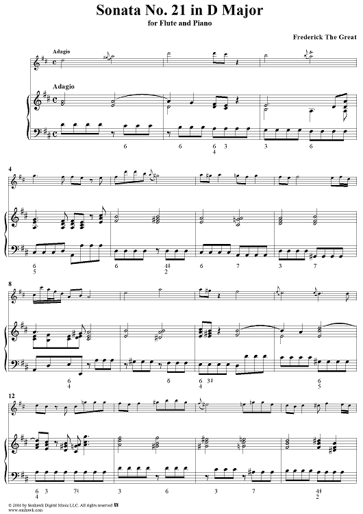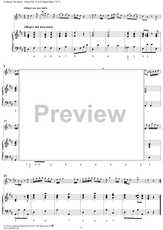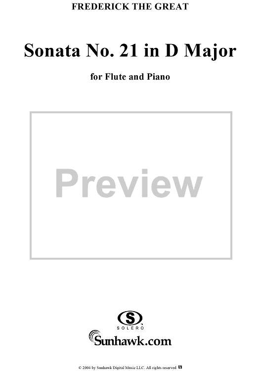 Digital Sheet Music for Sonata No. 21 in D Major - Piano by Frederick II, King of Prussia scored for Flute/Piano; id:303325