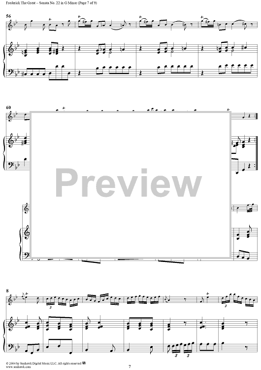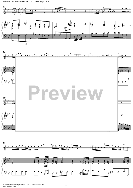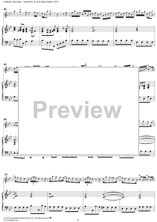 Digital Sheet Music for Sonata No. 22 in G Minor - Piano by Frederick II, King of Prussia scored for Flute/Piano; id:303326