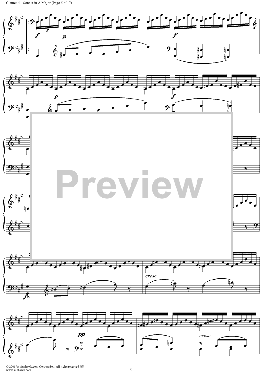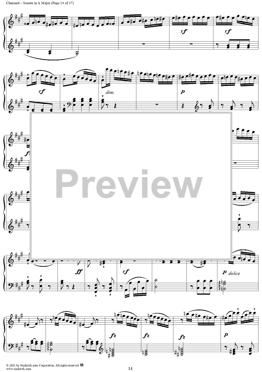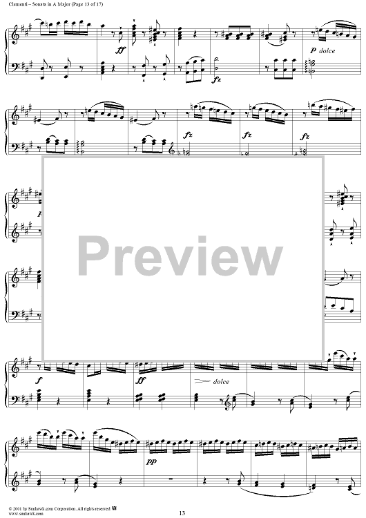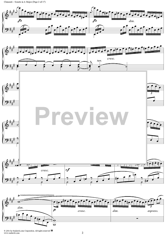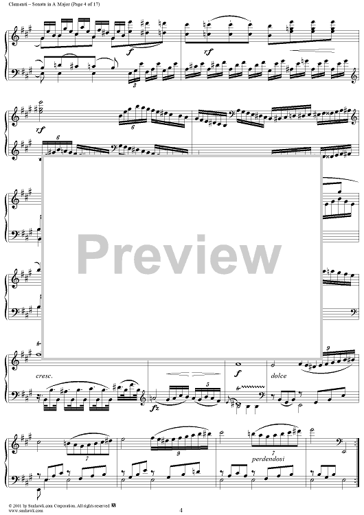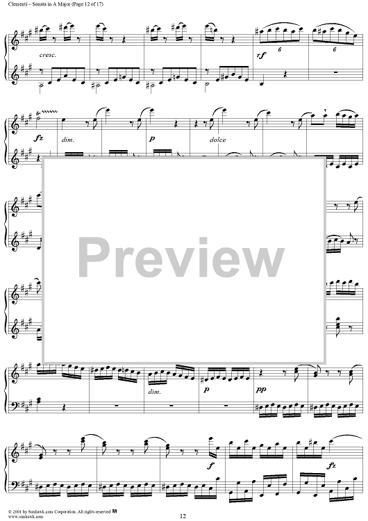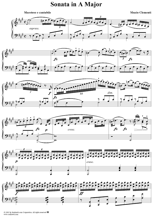 Digital Sheet Music for Sonata No. 23 in A Major by Muzio Clementi scored for Piano Solo; id:272402