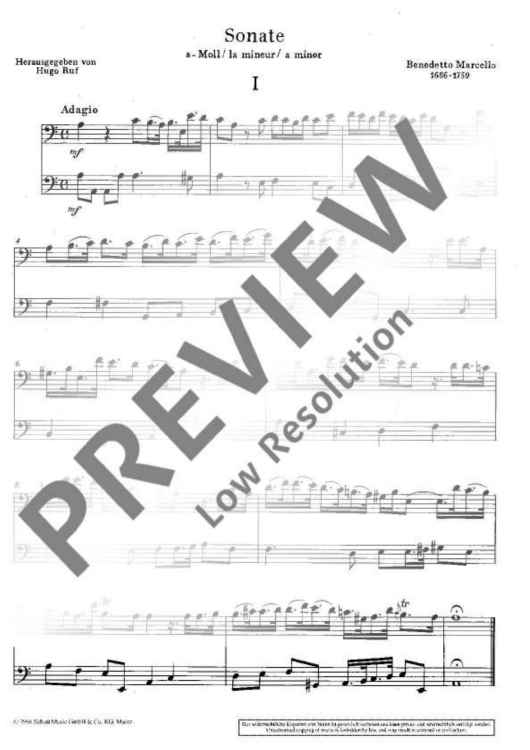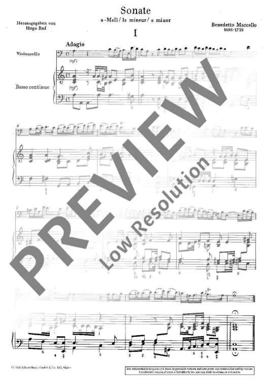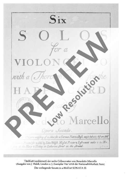 Die sechs Sonaten von Benedetto Marcello (1686-1739) gehören neben denjenigen von Antonio Vivaldi zu den bekanntesten Barockkompositionen für Violoncello und Basso continuo. Schon zu Lebzeiten des zu seiner Zeit durchaus berühmten Komponisten wurde die Sammlung in den wichtigen europäischen Musikmetropolen London, Paris und Amsterdam in Drucken angeboten. Auch wenn es einige unbequeme Griffverbindungen in diesen Sonaten gibt, die daher rühren dürften, dass Marcello mit einem fünfsaitigen, um eine e’-Saite ergänzten Cello rechnete, so sind sie doch von moderater Schwierigkeit und gehören zu den Standardwerken des Violoncellounterrichts.