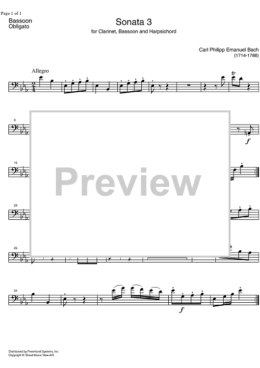 Digital Sheet Music for Sonata No. 3 Eb Major - Bassoon by Carl Philipp Emanuel Bach scored for Clarinet/Bassoon/Harpsichord; id:348056
