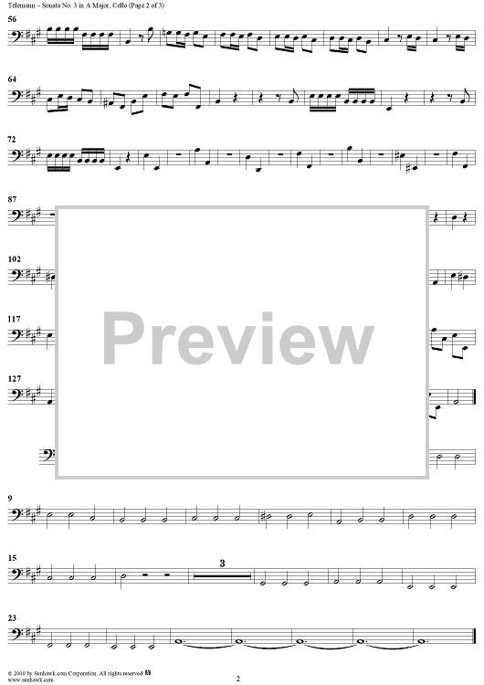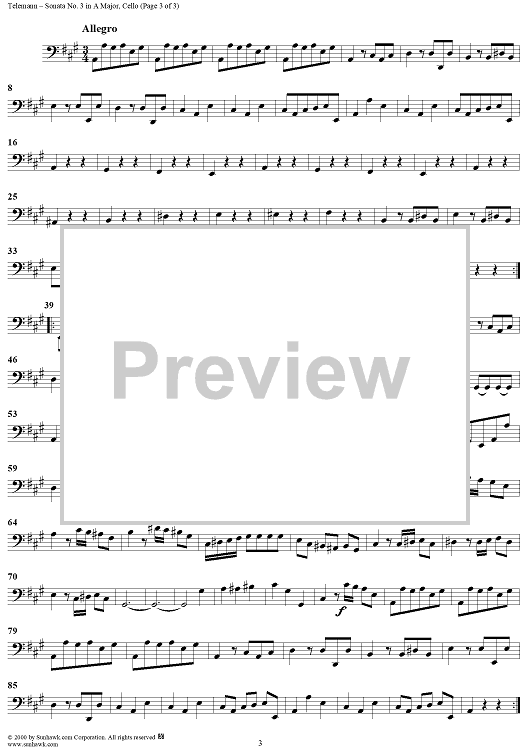 "Sonata No. 3 in A Major - Cello" Sheet Music by Georg Philipp Telemann