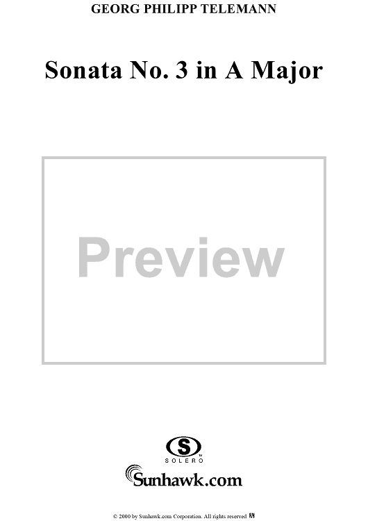 Digital Sheet Music for Sonata No. 3 in A Major - Cello by Georg Philipp Telemann scored for Flute, String Trio; id:198101