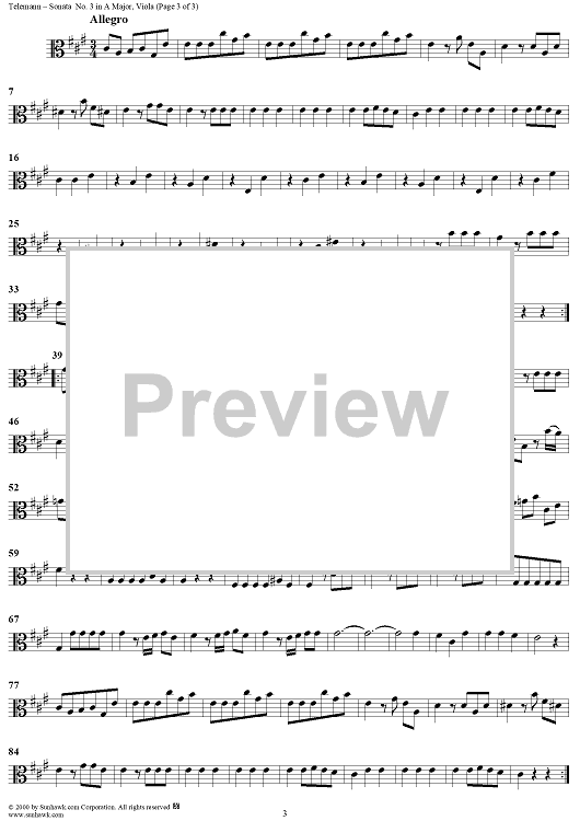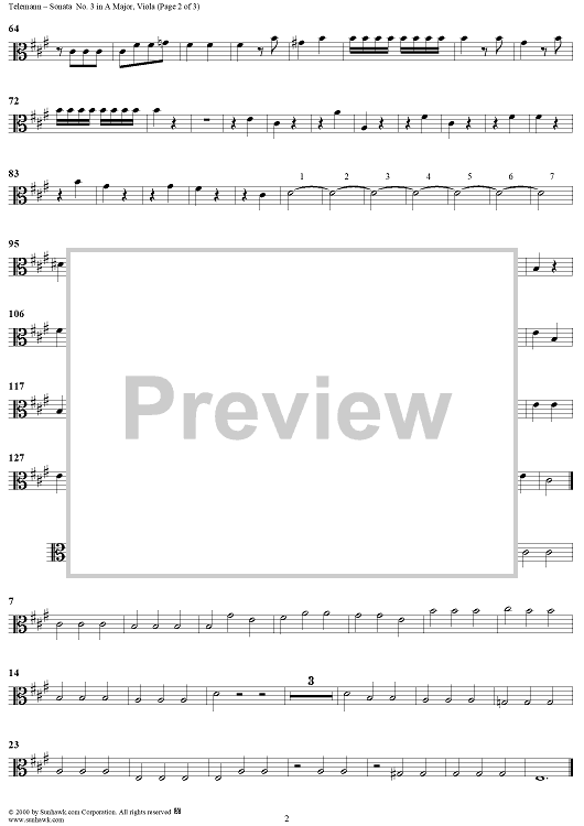 "Sonata No. 3 in A Major - Viola" Sheet Music by Georg Philipp Telemann