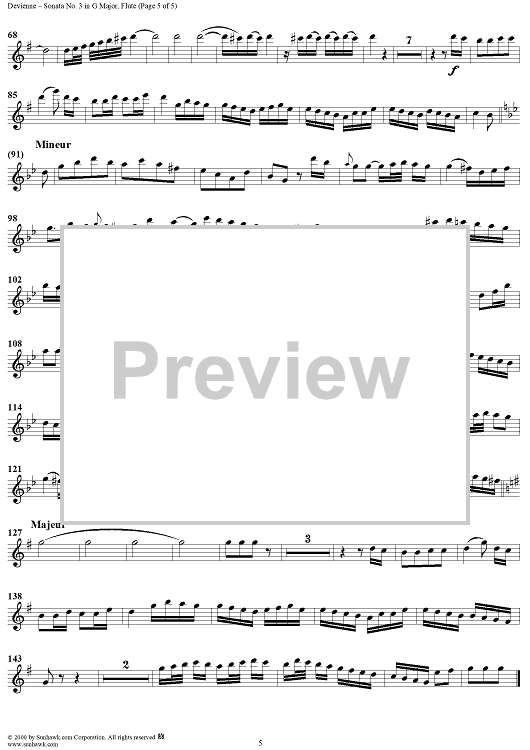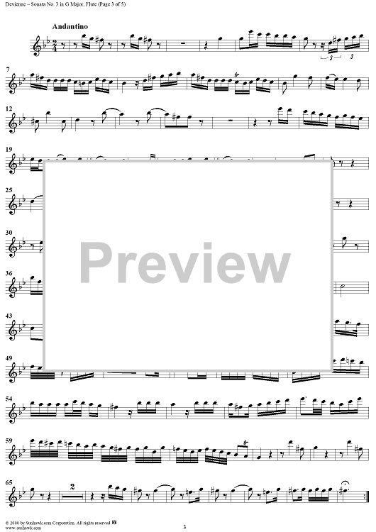 Digital Sheet Music for Sonata No. 3 in G major - Flute by François Devienne scored for Flute/Piano; id:220567