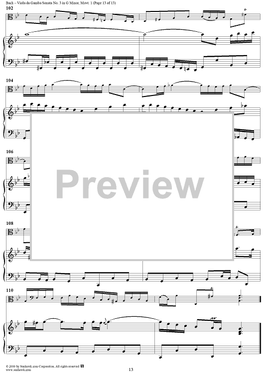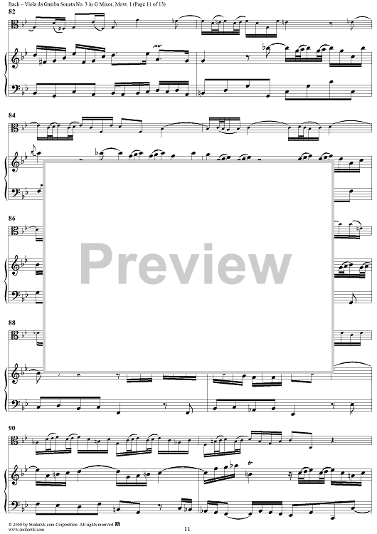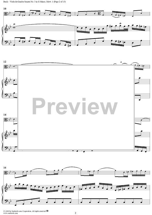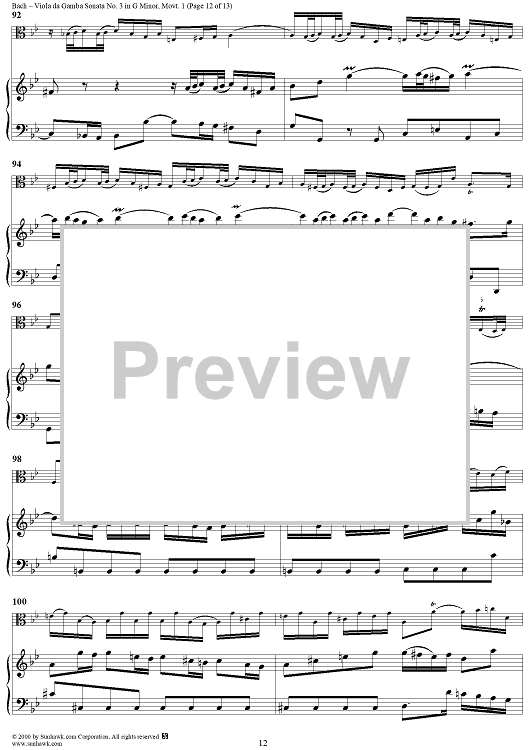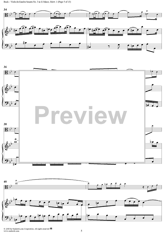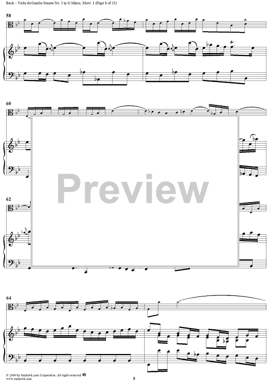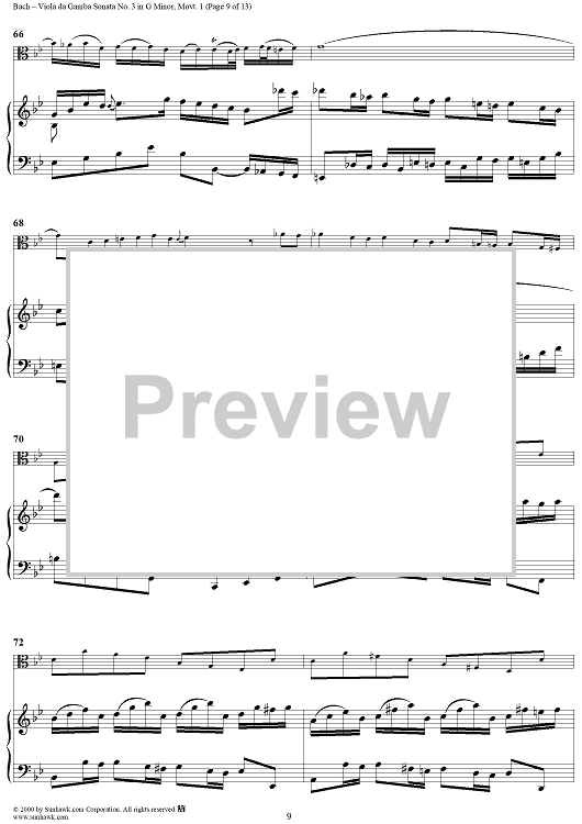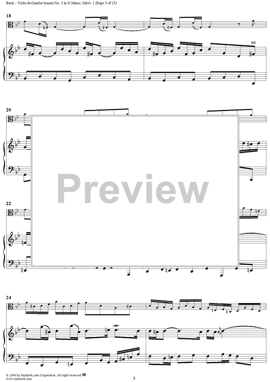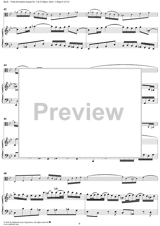 Digital Sheet Music for Sonata No. 3 in G Minor, Movement 1 - Piano Score by Johann Sebastian Bach scored for Viola da Gamba/Piano; id:240754