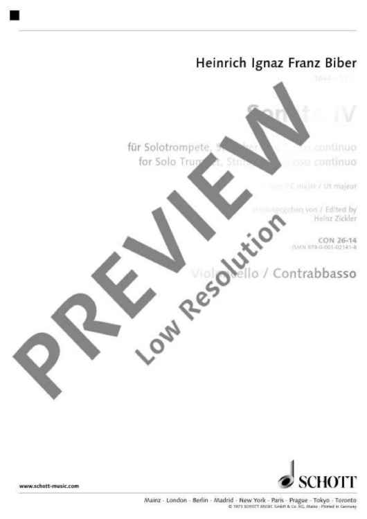 Digital Sheet Music for Sonata No. 4 C major - Violoncello/double Bass by Heinrich Franz Biber scored for Solo-trumpet, Strings And Basso Continuo; id:487373