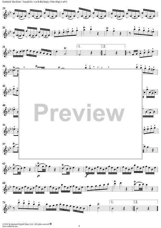 "Sonata No. 4 in B-flat Major - Flute" Sheet Music by Frederick II, King of Prussia