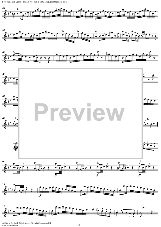 Digital Sheet Music for Sonata No. 4 in B-flat Major - Flute by Frederick II, King of Prussia scored for Flute/Piano; id:303479