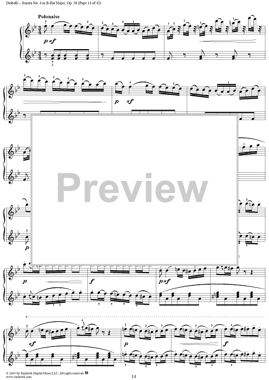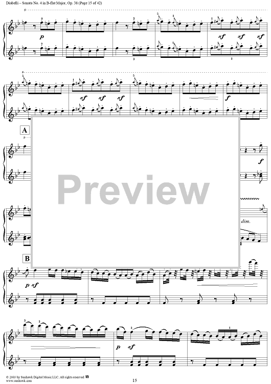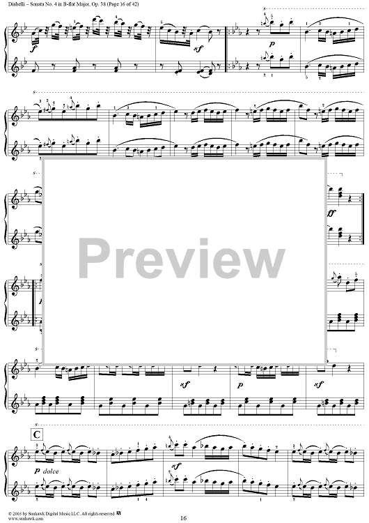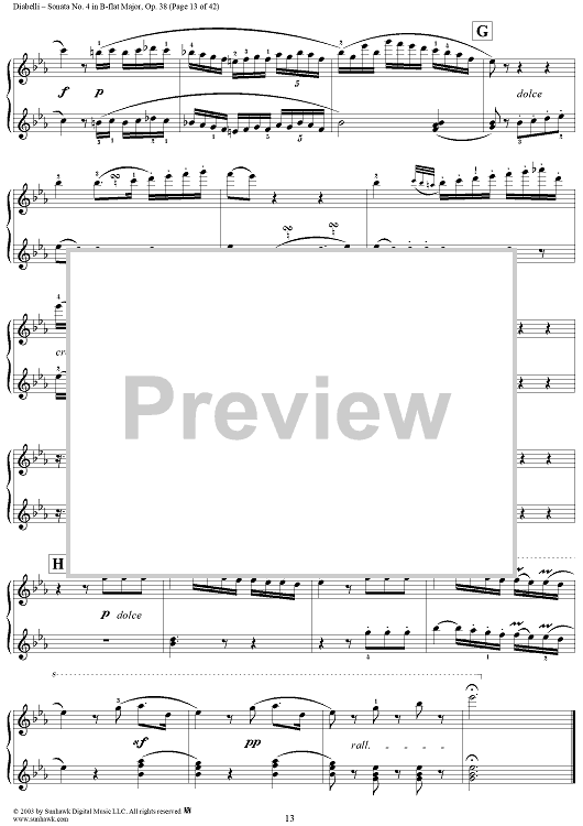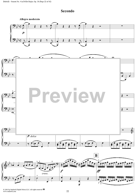 Digital Sheet Music for Sonata No. 4 in B-flat Major, Op. 38 by Anton Diabelli scored for 1 Piano, 4 Hands; id:294793