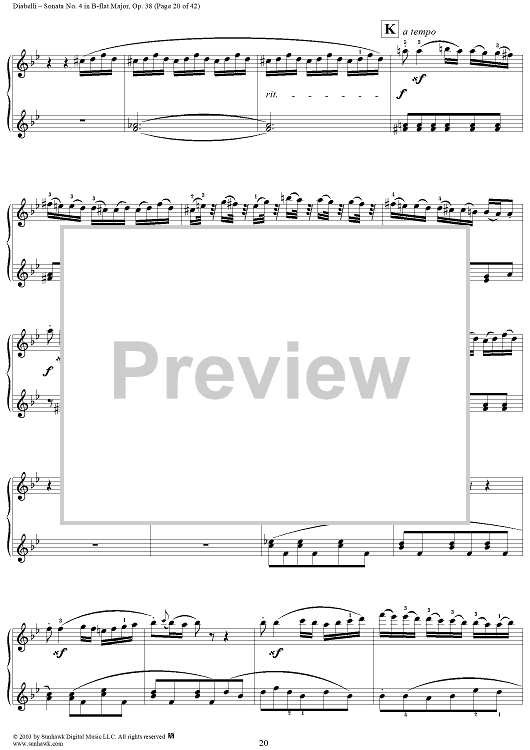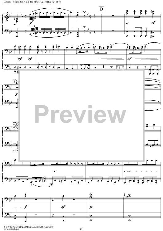 "Sonata No. 4 in B-flat Major, Op. 38" Sheet Music by Anton Diabelli