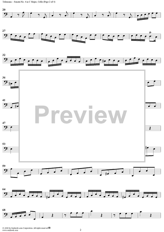 "Sonata No. 4 in C Major - Cello" Sheet Music by Georg Philipp Telemann