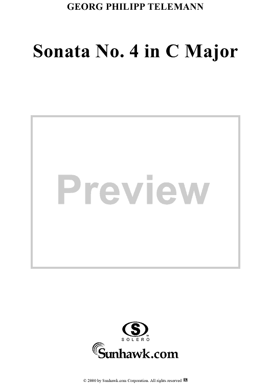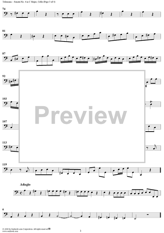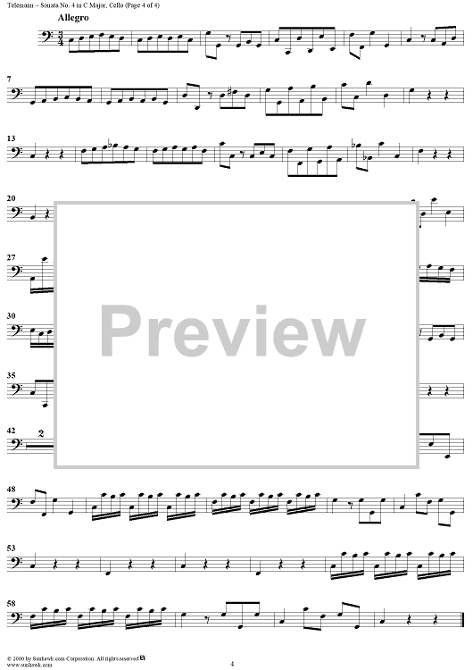 Digital Sheet Music for Sonata No. 4 in C Major - Cello by Georg Philipp Telemann scored for Flute, String Trio; id:198215
