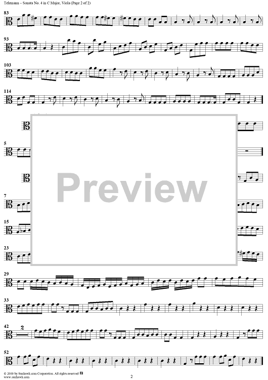 "Sonata No. 4 in C Major - Viola" Sheet Music by Georg Philipp Telemann
