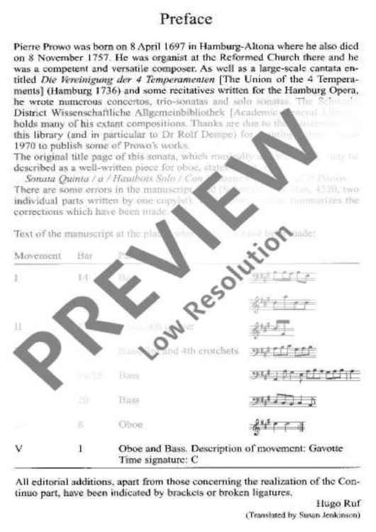 "Sonata No. 5 A major" Sheet Music by Pierre Prowo