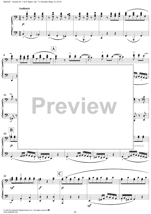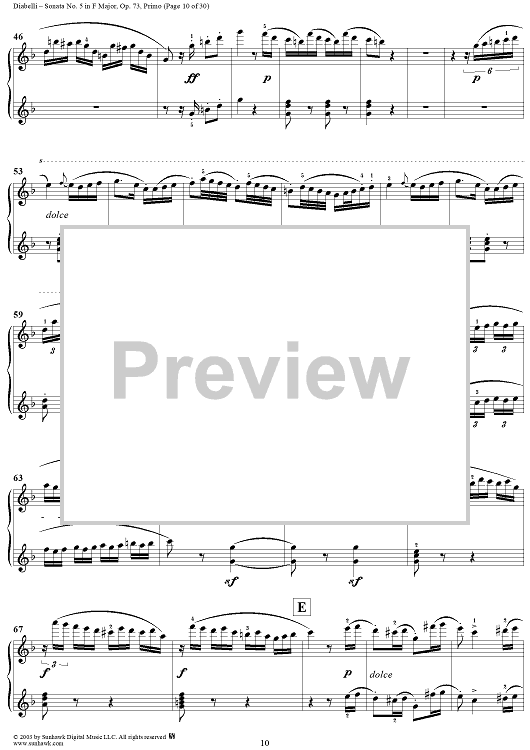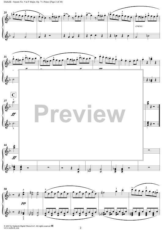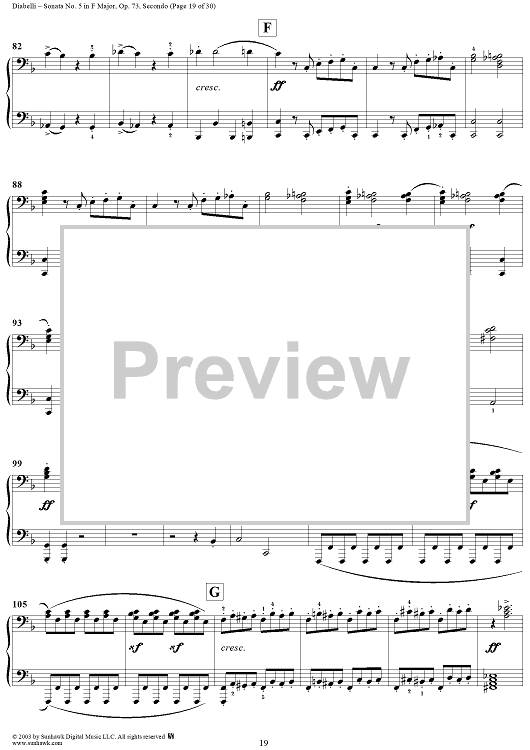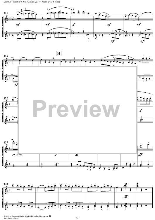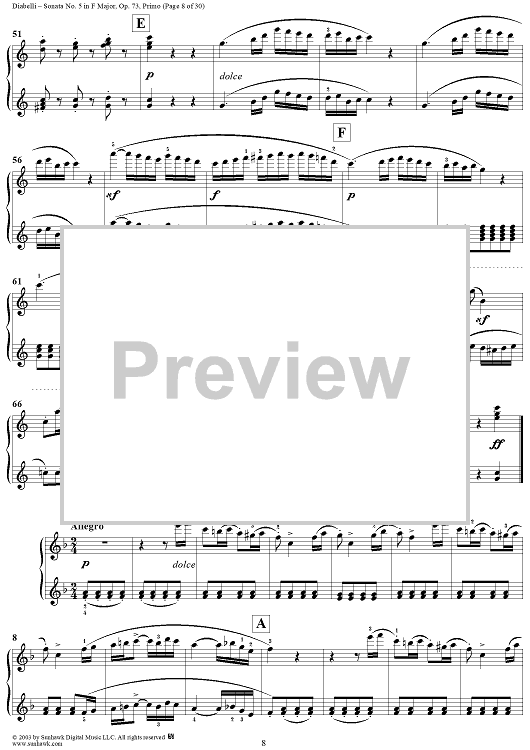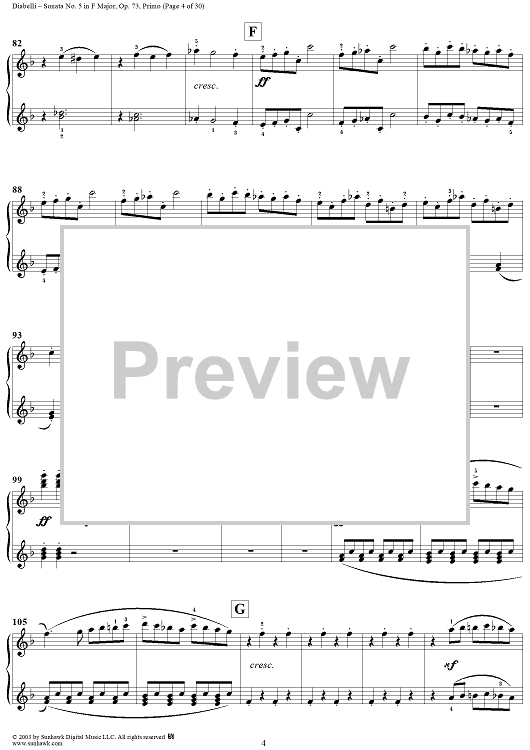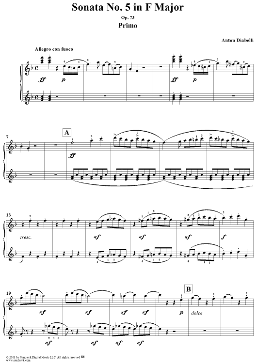 Digital Sheet Music for Sonata No. 5 in F Major, Op. 73 by Anton Diabelli scored for 1 Piano, 4 Hands; id:294794