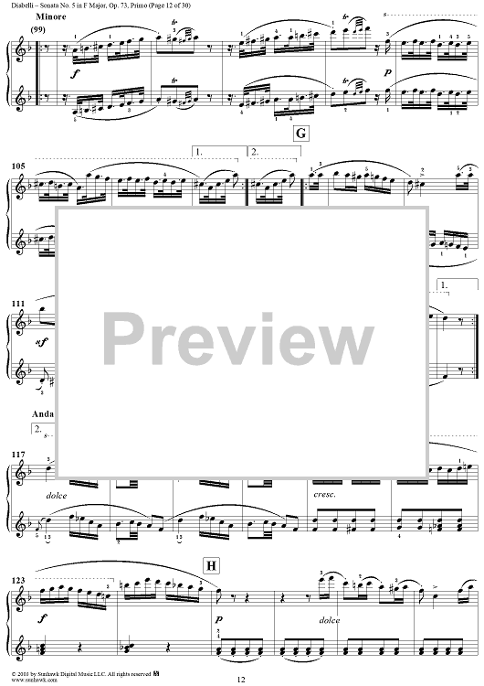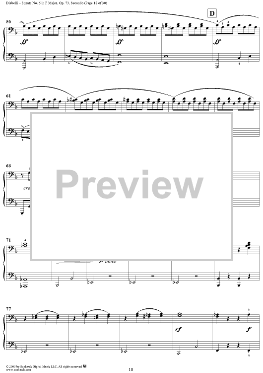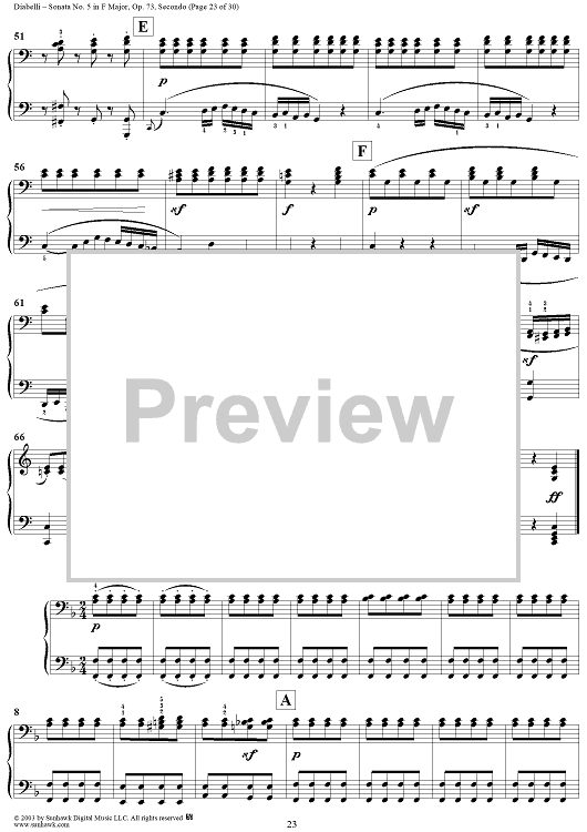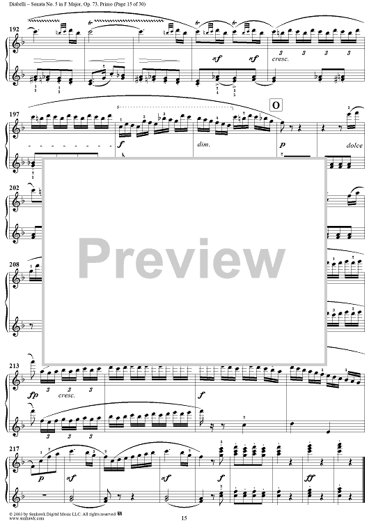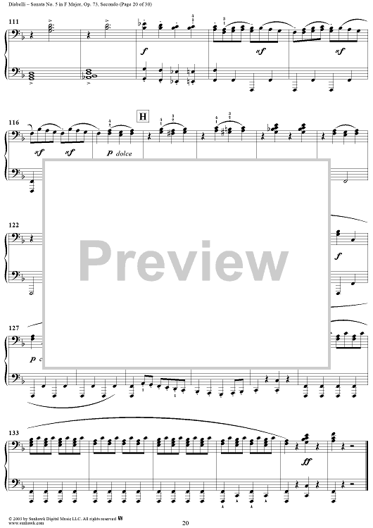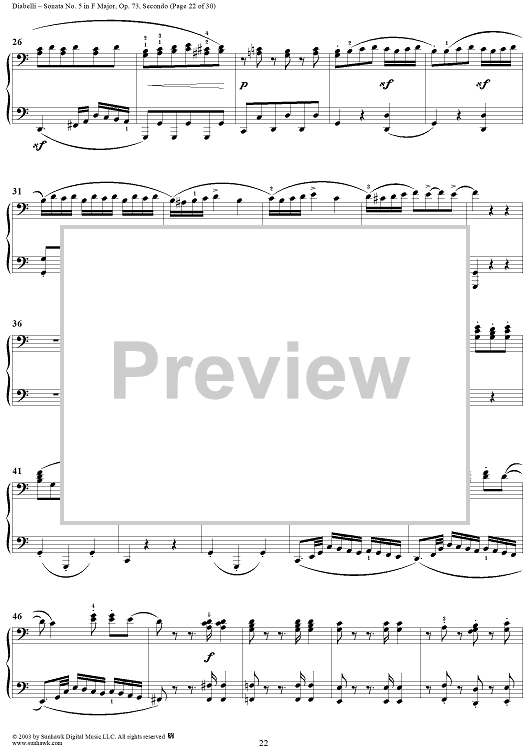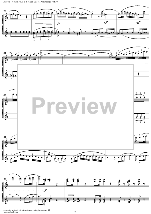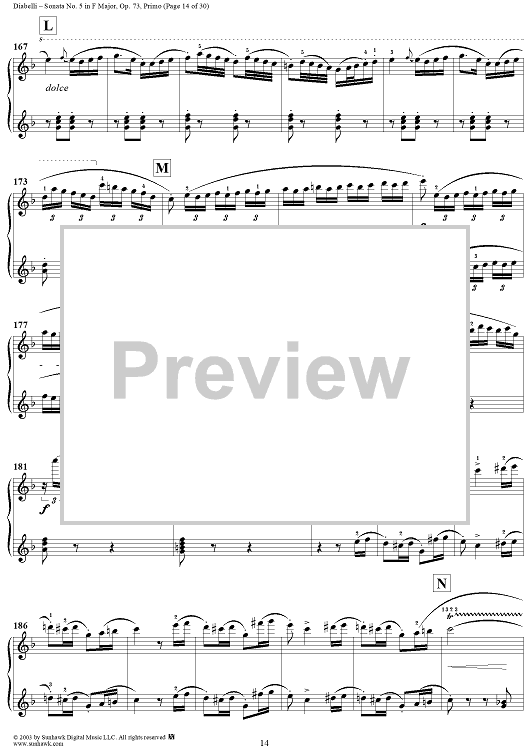 Digital Sheet Music for Sonata No. 5 in F Major, Op. 73 by Anton Diabelli scored for 1 Piano, 4 Hands; id:294794
