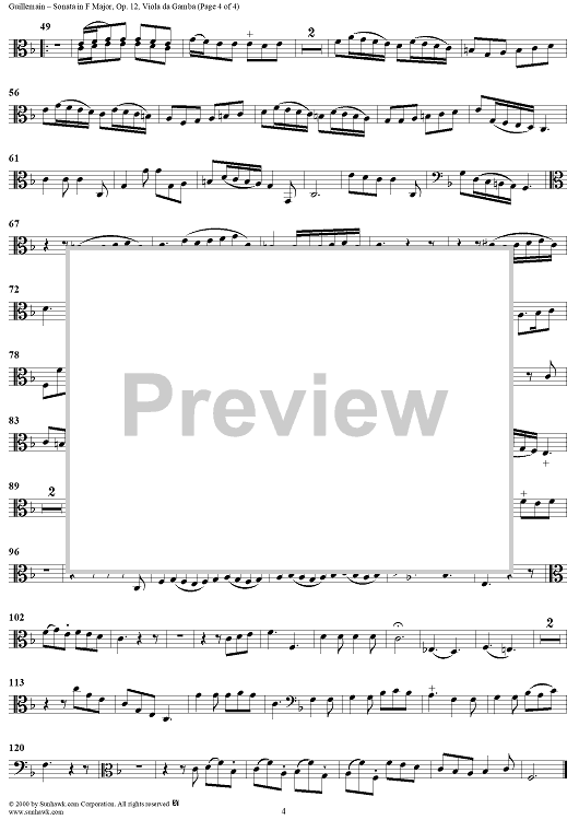 Digital Sheet Music for Sonata No. 5 in F Major - Viola da gamba by Louis-Gabriel Guillemain scored for Flute/Violin/Viola da Gamba/Continuo; id:267568