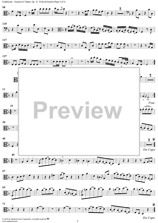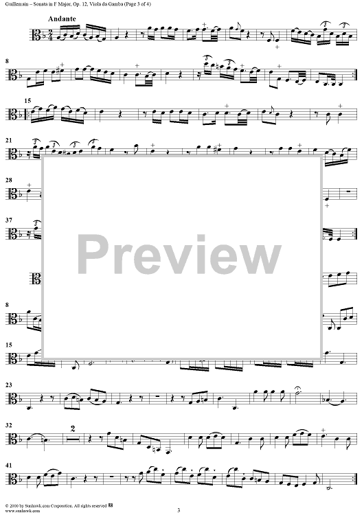 "Sonata No. 5 in F Major - Viola da gamba" Sheet Music by Louis-Gabriel Guillemain