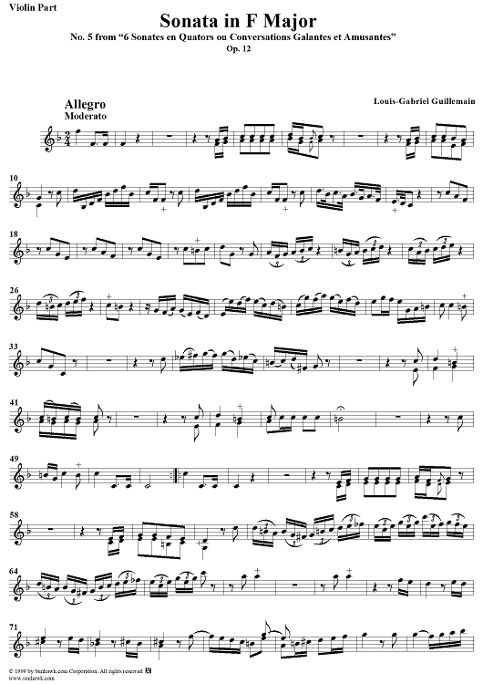 "Sonata No. 5 in F Major - Violin" Sheet Music by Louis-Gabriel Guillemain