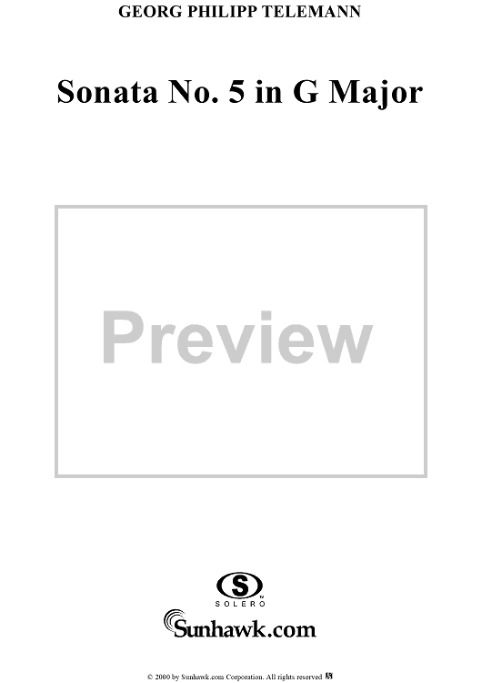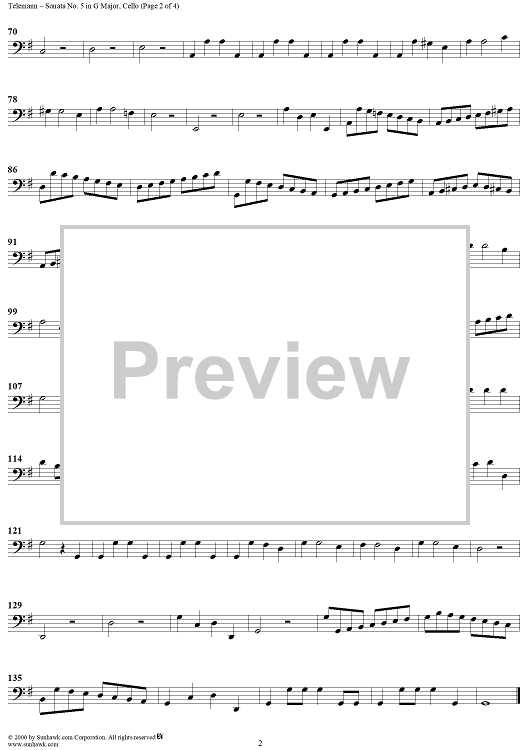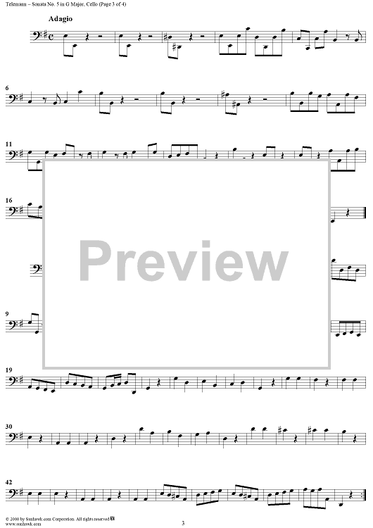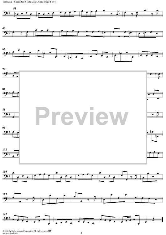 Digital Sheet Music for Sonata No. 5 in G Major - Cello by Georg Philipp Telemann scored for Flute/Violin/Viola/Cello; id:236686