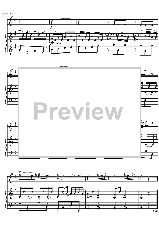 Digital Sheet Music for Sonata No. 6 G Major KV11 - Score by Wolfgang Amadeus Mozart scored for Flute/Piano; id:329502
