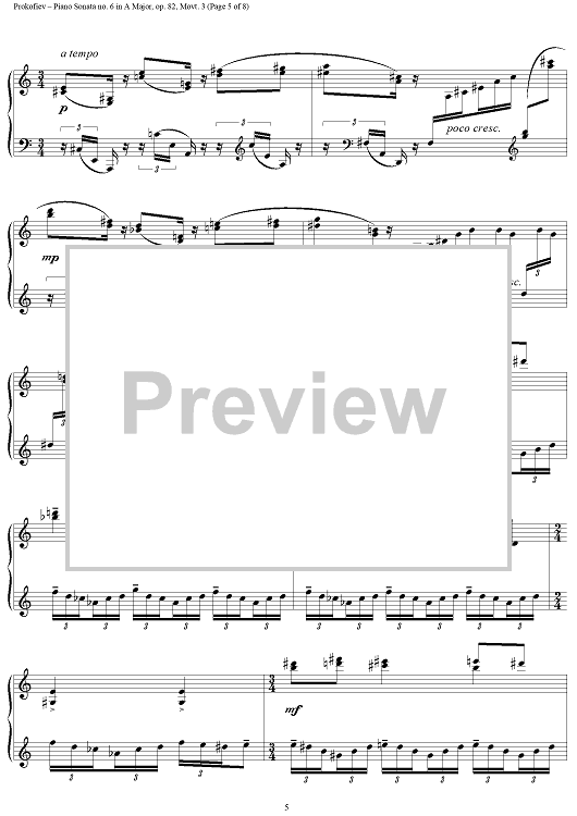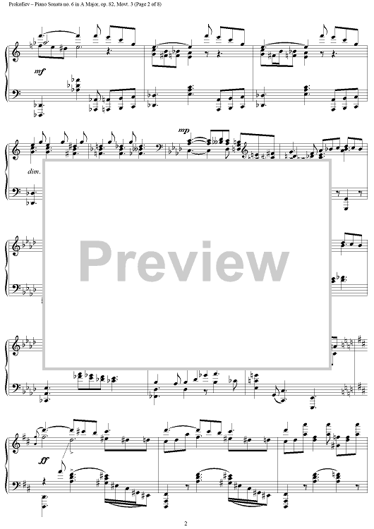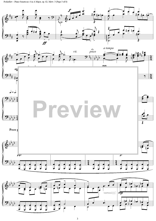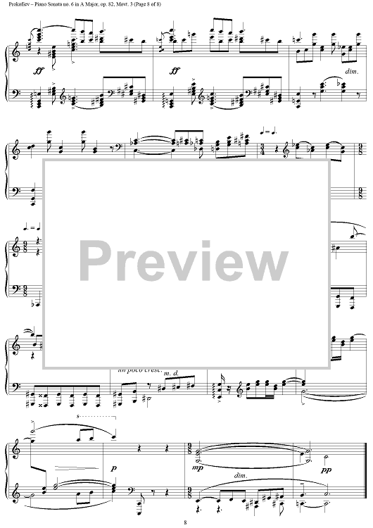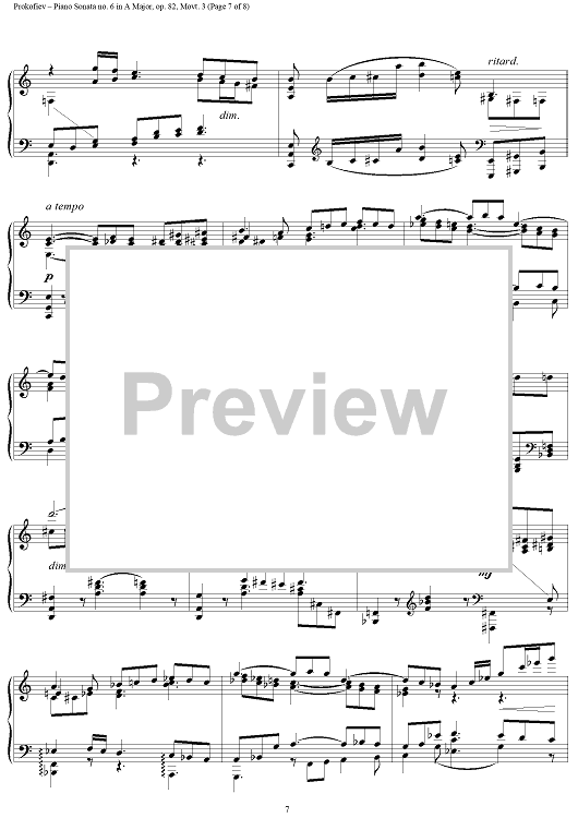 Digital Sheet Music for Sonata No. 6 in A Major, Op. 82, Movement 3, "War Sonata 1" by Sergei Prokofiev scored for Piano Solo; id:254783