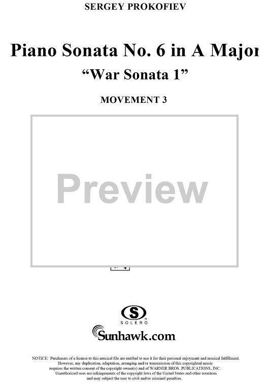 "Sonata No. 6 in A Major, Op. 82, Movement 3, "War Sonata 1"" Sheet Music by Sergei Prokofiev